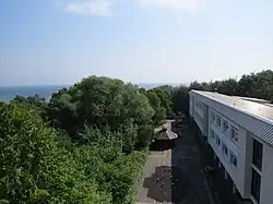 Mitte der 1950er Jahre war erneut das räumliche Fassungsvermögen der Schule erschöpft, sodass die Errichtung eines Schulneubaus in die Wege geleitet wurde.[11] Im August 1961 legte der schleswig-holsteinische Kultusminister Edo Osterloh den Grundstein zum neuen Ostsee-Gymnasium. Das von dem Architekten Wilhelm Neveling entworfene Schulgebäude wurde auf einer Anhöhe oberhalb des Ortes errichtet, rund 200 Meter von der Küste entfernt.[12] Am 31. August 1962 gerichtet, dauerte es jedoch noch ein weiteres halbes Jahr, bis die Räume des in direkter Nachbarschaft zu dem Internat gelegenen Gebäudekomplexes bezugsfertig waren.[13] Mit dem Neubau der Schule hatte das abgewohnte Hotel zur Kammer ausgedient und wurde abgerissen. Nach 17 Jahren endete der Schichtunterricht im Hotel.[13] Die Trennung von Schule und Internat wurde 1964 auch rechtlich untermauert. Fast alle Schüler des Internats besuchten jedoch weiterhin das Ostsee-Gymnasium und stellten dort rund ein Drittel der Schüler.