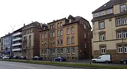 - In der ehemaligen Nr. 99 befand sich ein Wohnhaus mit Büro für den Apotheker Lindenmeyer, die nach den Plänen vom Stuttgarter Architekten Prof. Robert Reinhardt von 1875 erbaut wurde. Als das Haus errichtet wurde, war die Oststraße noch nicht ausgebaut.