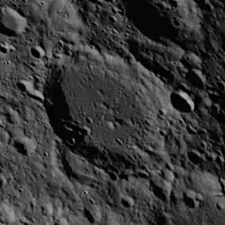 | Aufgenommen von Apollo 16 (Norden ist rechts oben; rechts unten im Bild ist der Krater Recht mit einem Durchmesser von 20 km) | ||