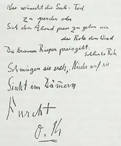 Ab 1912 erschienen in Zeitschriften einige wenige Gedichte und Prosaskizzen, die dem Expressionismus zuzurechnen sind. Auch Friedrich Nietzsche beeinflusste ihn. „In seiner lyrischen Diktion orientiert er sich weitgehend an konventionellen, reduktiv-strengen, reimverpflichteten Versformen, deklariert seine Gedichte oft als Lieder und verleiht ihnen Musikalität etwa durch eine ritornellartige Struktur.“ (H. Vollmer, S. 192)