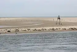 Die Ostbake ist ein rund fünf Meter hohes Holzgerüst, an der eine Webcam installiert ist, mit der man die Seehunde auf der Sandbank beobachten kann. Zur Stromversorgung dienen Solarzellen. Bei Hochwasser, starkem Sturm oder Eisgang wird die Bake abgebaut.