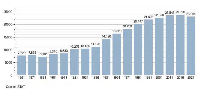- ↑ Bilancio demografico e popolazione residente per sesso al 31 dicembre 2024. ISTAT. (Bevölkerungsstatistiken des Istituto Nazionale di Statistica, Stand 31. Dezember 2024).