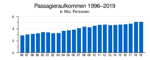 | Jahr | Fluggastaufkommen | Luftfracht (Tonnen) | Kommerzielle Flugbewegungen | ||