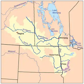 ![]() Einzugsgebiet des Red River of the North, der Otter Tail River ist hervorgehoben | ||