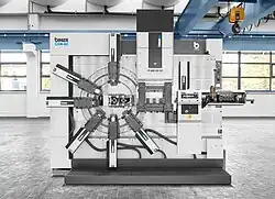 Das Bihler Multicenter MC 82 ist ein Beispiel für ein Maschinensystem zur Kombination von Stanzen, Umformen, Montieren, Gewindeschneiden, Schrauben oder Schweißen.[17] Mit Bihler-Maschinen lassen sich etwa unscheinbare Bauteile aus Draht wie etwa Kontaktfedern hochpräzise herstellen. Die dabei erreichbaren Taktraten variieren von Maschine zu Maschine. Der Stanz-Biegeautomat RM 40 beispielsweise erreicht Taktraten von 350/min,[18] wohingegen der Stanzbiegeautomat GRM 80 E Taktraten von 200/min erreicht.[19]
