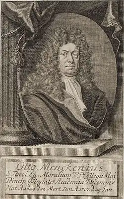 Otto Mencke (* 22. März 1644 in Oldenburg; † 18. Januarjul. / 29. Januar 1707greg.[1] in Leipzig) war ein deutscher Gelehrter und Professor für Moral und Politik an der Philosophischen Fakultät der Universität Leipzig.