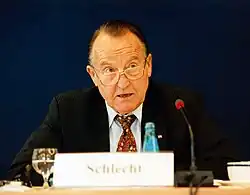 Er trat 1953 unter dem Minister Ludwig Erhard als junger Referent in das Bundesministerium für Wirtschaft (heute Bundesministerium für Wirtschaft und Klimaschutz) ein und wurde dort 1973 zum Staatssekretär befördert. Er war Staatssekretär unter acht Wirtschaftsministern (Hans Friderichs (FDP), Otto Graf Lambsdorff (FDP, 1977–1982), Manfred Lahnstein (SPD, 1982), Otto Graf Lambsdorff (1982–1984), Martin Bangemann (FDP, 1984–1988), Helmut Haussmann (FDP, 1988–1991), Jürgen Möllemann (FDP, 1991–1993) und Günter Rexrodt (FDP, 1993–1998)) und drei Bundeskanzlern (Willy Brandt, Helmut Schmidt und Helmut Kohl). Schlecht war parteilos und nach seiner Pensionierung 1991 bis zu seinem Tod Vorsitzender der Ludwig-Erhard-Stiftung. Er war auch Mitglied des Beirates der gemeinnützigen Bertelsmann Stiftung und der Mont Pèlerin Society. Bis heute ist er der am längsten amtierende Staatssekretär in der Geschichte der Bundesrepublik.[1]