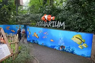 Das Gelände ist abwechselnd mit Freianlagen und Tierhäusern ausgestattet.[2] Einen besonderen Anziehungspunkt für die Besucher stellt das Schauaquarium dar. 2015 wurde dort ein großes Becken für Zitteraale (Electrophorus) in Betrieb genommen. Dieses Becken ist ungefähr 7 Meter lang, 5 Meter breit und 1,4 Meter tief. Es fasst ca. 45.000 Liter Wasser. Die Zitteraale wurden mit einer Länge von etwa einem halben Meter eingesetzt. Ihre erwartete maximale Länge, wenn sie ausgewachsen sind, wird ca. 1,20 Meter betragen.[3]