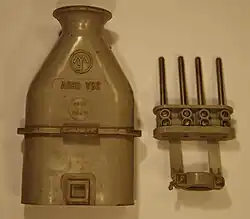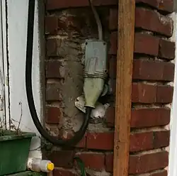 Die ovale Kragensteckvorrichtung nach DIN 49450 (Steckdose) und DIN 49451 (Stecker) ist eine vierpolige Drehstromsteckverbindung, die bis 1975 in Westdeutschland und 1990 in der DDR verbreitet war. Die Normen wurden in der Bundesrepublik am 31. Dezember 1974 zurückgezogen, noch vorhandene Steckverbinder mussten bis zum 31. Dezember 1980 außer Gebrauch genommen werden.[1] In den neuen Bundesländern mussten sie bis zum 31. Dezember 1997 umgestellt werden.[2] Sie sind aber nach wie vor, insbesondere in landwirtschaftlichen Betrieben, anzutreffen.