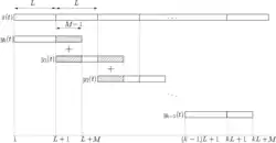 sind außerhalb des Intervalls [1,L+M-1] Null. Für jeden Wert des Parameters N, der größer-gleich als L+M-1 gewählt sein muss, ergibt sich die zirkulare Faltungsoperation der Ausgangsfolge. Die einzelnen Ausgabefolgen yk[k] überlappten sich in den Intervallen [k(L+1),k(L+M)], und durch die Summierung wird die Ausgabefolge y[k] gebildet.