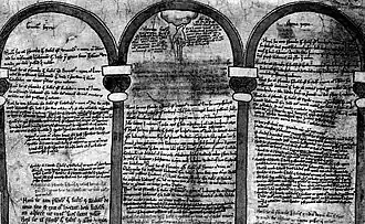 Es waren die Pfarrgemeinden der Kernstadt mit der Rheinvorstadt, die öffentlichen Gerichtsbezirke Niederich und Oversburg sowie die Gruppe der Vorstadtbezirke Severin, Mauritius und Christoph, die sich an ihre dortigen Hofgerichte Severin, Pantaleon und Gereon anlehnten. Lediglich der erst spät entstandene Bezirk Aposteln unterschied sich von den anderen, da er sowohl Teile der Altstadt als auch Gebiete der beiden Stadterweiterungen umfasste. Obwohl diese Gruppen zu verschiedenen Zeiten und auf unterschiedlichen Grundlagen entstanden waren, besaßen sie gleichartige Organisationsformen.[KI 4] Die Führung der Schreinskarten gehörte zu den wichtigsten Tätigkeiten der Sondergemeinden des 12. Jahrhunderts. So die der Bezirke mit den „Schreinen“ Martin, Brigiden, Alban, Laurenz, Peter, Columba, Aposteln, Niederich, und Airsbach.