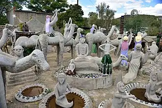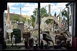 An zwei Seiten des Hauses grenzt ein halbes Acre großer Skulpturengarten, der von Martins so genannte „Camel Yard“, in dem Motive aus dem Inneren des Hauses, vor allem Eulen und Meerjungfrauen, aufgegriffen sind. Martins Inspiration stammte sowohl aus der christlichen als auch östlichen Kultur und ist von Motiven der Bibel, William Blakes Werk und Omar Chayyāms Schriften geprägt.[2][4] Neben Fabelwesen, Kirchen, Pyramiden und menschlichen Figuren finden sich die von Helen Martins bevorzugten Darstellungen von Eulen und Kamelen. Einen großen Raum nimmt eine Prozession von Schafhirten und Weisen ein, die Richtung Mekka gewandt aufgestellt sind.[2][3]