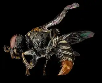 Die Arten der Gattung sind mit 4 bis 11 Millimetern verhältnismäßig klein und haben einen gedrungenen Körperbau. Viele Arten haben eine gelbe oder weißliche Zeichnung am Hinterleib. Die Flügeladerung ist reduziert, die einzige Submarginal- und Diskoidalzelle sind miteinander verwachsen. An den Seiten des Schildchens (Scutellum) befinden sich zwei lappenförmige, häufig durchsichtige Fortsätze. Das Propodeum hat einen langen rinnenartigen Fortsatz (Mucron), der nach hinten gerichtet ist. Der Rand der Stirnplatte (Clypeus) ist beim Männchen vorne mit drei Zähnen versehen, beim Weibchen sind es häufig nur zwei kleine an den Seiten. Die Ausdehnung der Hinterleibszeichnung, die Punktierung und auch die Form des Mucron sind auch innerhalb derselben Population sehr variabel. Die Artbestimmung ist meistens sehr schwierig.[1]
