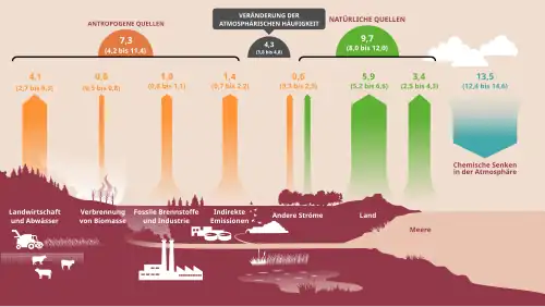 - ↑ a b Walter Roedel, Thomas Wagner: Atmosphärische Spurengase. In: Walter Roedel, Thomas Wagner: Physik unserer Umwelt: Die Atmosphäre. Springer, Berlin, Heidelberg, 2011, ISBN 978-3-642-15729-5, S. 403–412.