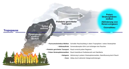 - ↑ a b A. Ansmann u. a.: Ozone depletion in the Arctic and Antarctic stratosphere induced by wildfire smoke. In: Atmospheric Chemistry and Physics. 22.17, 2022, S. 11701–11726, doi:10.5194/acp-22-11701-2022.