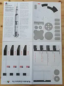 Modellbogen Rakete «Saturn V», 1. Auflage 2023, grosser vierseitiger Modellbogen mit vorgestanzten und vorgerillten Bauteilen