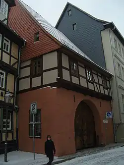 - ↑ Hans-Hartmut Schauer, Quedlinburg, Fachwerkstatt/Weltkulturerbe, Verlag Bauwesen Berlin 1999, ISBN 3-345-00676-6, Seite 40