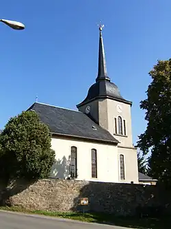 Das nur 228 ha Fläche besitzende Dörfchen wurde am 13. April 1333 erstmals urkundlich genannt.[2] Am 1. Oktober 1922 erfolgte die Vereinigung der beiden Anteile der Gemeinde (reußischer Anteil mit 113 Ew., altenburgischer Anteil mit 7 Ew. – Volkszählungsergebnis 1919). Den Ortskern prägt die Kirche. Der Ort war und ist landwirtschaftlich geprägt.[3]
