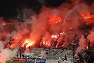 - ↑ Pokal: Fans sorgen für Spielabbruch in Saloniki. In: Süddeutsche Zeitung. 3. März 2016, abgerufen am 27. August 2020.