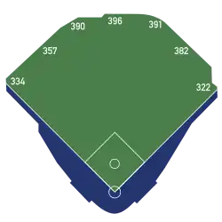 | Spielfläche | Left Field – 367 ft (112 m) Left-Center – 402 ft (123 m) Center Field – 396 ft (121 m) Right-Center – 402 ft (123 m) Right Field – 382 ft (116 m)
