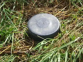 Zünder: Druckzünder auf der Oberseite, der nur bei zusätzlicher Scherung zündet.