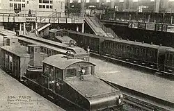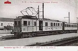 Im Jahr 1900 elektrifizierte die PO ihre neu errichtete Strecke zwischen den Pariser Bahnhöfen Gare d’Orléans[1] und Gare d’Orsay mit einer Gleichspannung von 550 V, die aus seitlich der Gleise angebrachten Stromschienen bezogen wurde. Zwischen den beiden Bahnhöfen wurden die Züge von kleinen Elektrolokomotiven gezogen. 1904 stellte die PO im Zuge der Verlängerung der Elektrifizierung nach dem 22 Kilometer entfernten Juvisy, in deren Zusammenhang die Fahrspannung auf 600 V erhöht wurde, mit der Baureihe AE erstmals elektrische Triebwagen in Dienst.