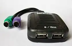 Daneben existieren auch in umgekehrter Richtung aktive USB-PS/2-Adapter, ebenfalls mit einer zusätzlichen Elektronik, an die eine USB-Tastatur und eine USB-Maus angesteckt werden können, welche den PS/2-Standard nicht beherrschen. Damit ist es möglich, neuere USB-Tastaturen oder USB-Mäuse an älteren Rechnern mit PS/2-Schnittstelle zu betreiben.