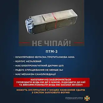 Die PTM-3 (russisch противотанковая мина Panzerabwehrmine) ist eine fernverlegbare Panzermine aus russischer Produktion.