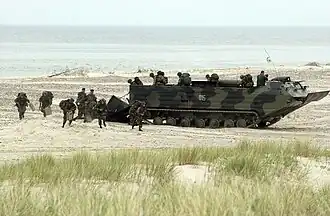![]() Ein polnisches PTS-2-Amphibienfahrzeug während des Manövers BALTOPS 2003 mit Marineinfanteristen aus verschiedenen NATO-Staaten | |
