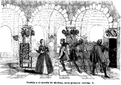 - ↑ Gloria Araceli Rodríguez Lorenzo: El rol femenino en la construcción de la ópera española: el caso de Padilla o el Asedio de Medina. In: Jornadas de investigación „Violencia de Género en el teatro lírico universal“. Oviedo 2012, S. 15 (spanisch, online).