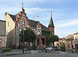 Um 1910 hatte die Stadt eine evangelische Kirche, eine katholische Pfarrkirche, eine Synagoge, eine gewerbliche Fortbildungsschule, Getreidehandel, Pferde- und Viehmärkte, eine Molkerei, Mühlen, eine Zuckerfabrik und Holzsägewerke.[4]