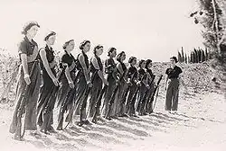 Bei Ausbruch des Zweiten Weltkriegs versuchte die britische Regierung die palästinensischen Araber durch Zugeständnisse stärker an sich zu binden.[14] Das britische Weißbuch von 1939, das den Aufbau eines vereinigten jüdisch-arabischen Staates binnen zehn Jahren anstrebte und eine Kontrolle der Einwanderung versprach, wurde sowohl von jüdischer Seite als auch von der palästinensischen Führung bekämpft.[11] Als Reaktion auf die einschränkenden Vorschriften des Weißbuchs, wonach für einen fünfjährigen Zeitraum die Einwanderung von maximal 75.000 Juden nach Palästina gestattet war, erfolgte während des Zweiten Weltkriegs eine verstärkte illegale Einwanderung.[15] Insgesamt scheiterten die britischen Bemühungen, durch Zugeständnisse die arabische öffentliche Meinung für sich zu gewinnen. In einer Meinungsumfrage im Mandatsgebiet vom Februar 1941 gaben 88 % der palästinensischen Araber an, sie hofften auf einen Sieg der Achsenmächte, und große Teile der arabischen politischen Führung, allen voran Husseini, kollaborierten offen mit NS-Deutschland durch öffentliche Propaganda zur Aushebung muslimischer Truppen der Waffen-SS. Infolgedessen stützte sich die britische Regierung bei der Aushebung von Militärverbänden in Palästina für den Fall einer deutschen Invasion auf den Jischuw und schuf mit dem Palmach sowie der Jüdischen Brigade die Keimzelle des späteren israelischen Militärs. Insgesamt dienten rund 26.000 jüdische Bewohner des Mandatsgebietes während des Weltkriegs in den britischen Streitkräften,[16] während dies hingegen auf nur 12.000 arabische Bürger zutraf.[17]