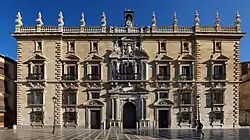 Die zweigeteilte Fassade wurde von Francisco del Castillo el Mozo entworfen und von Martín Díaz de Navarrete ausgeführt. Im unteren Teil finden sich drei Türen, der obere Teil weist sieben Balkone mit korinthischen Säulen auf. Über dem zentralen, größten Balkon finden sich Statuen und ein Wappenschild. Zwischen den beiden Stockwerken verläuft ein trennendes Gurtgesims. Auf dem Dach findet sich eine Balustrade und eine später aufgesetzte Uhr.