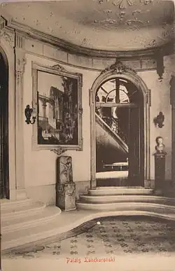 Das Palais diente einerseits als gräfliches Domizil, andererseits als Stätte eindrucksvoller Empfänge. Es erfüllte gleichzeitig die Anforderungen an die Wohn- und die Repräsentationsbedürfnisse und eignete sich für die öffentliche Präsentation der Kunstsammlung des Mäzen Lanckoroński. Es verkehrten dort Künstler wie Hans Makart, Viktor Tilgner, Arnold Böcklin, Kaspar von Zumbusch und Auguste Rodin sowie Schriftsteller wie Hugo von Hofmannsthal und Rainer Maria Rilke.