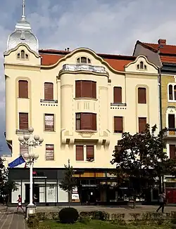 - ↑ a b Timpolis.ro, Mara Carpencu Pop: Sapte in Piata Victoriei – Palatele din centrul Timisoarei, Ausgabe 29. Dezember 2005 – 4. Januar 2006, in rumänischer Sprache