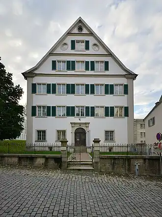 Der ehemalige Adelssitz ist der ältere, bergseitige Trakt und wurde in den Jahren 1688 bis 1690 vom Bregenzer Stadtammann Johann Mathias Christoph von Bildstein errichtet. Als Architekt kommt der Vorarlberger Barockbaumeister Johann Georg Kuen in Frage. 1732 erwarb Graf Ferdinand Ludwig zu Wolfegg, Freiherr auf Waldburg in Württemberg den Ansitz und ließ einige Umbauten vornehmen. Später vermietete die Familie die im Haus befindlichen Wohnräume an höhere Landesbeamte. Die Kellerei wurde an Weinhändler und Wirte verpachtet. Zu den Bewohnern zählten der Oberamtsrat Franz Xaver von Harrant zu Melans (1759), der kaiserliche Landvogt für Vorarlberg Graf Franz von Seeau (ab 1778) und dann der Kreis- und Landeskommissär während der bayerischen Besetzung Franz Vintler zu Platsch und Runggelstein.