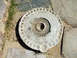 An der Südwestseite befindet sich ein ungewöhnlich bearbeiteter Stein von etwa 90 cm Durchmesser, der Kernos, einem Mühlstein nicht unähnlich, mit einem Zapfenloch im Zentrum und 34 kranzartig verteilten, napfartigen Vertiefungen sowie einer seitlich herausragenden Vertiefung. Es wird angenommen, dass es ein Opferstein war. An der Ostseite des Zentralhofs befinden sich Lagerräume mit irdenen pithoi von bis zu 2 m Höhe. Sie wurden vermutlich zur Aufbewahrung von Olivenöl und anderen Flüssigkeiten genutzt. Der Boden dieser Räume weist ein komplexes Drainagesystem auf, um verschüttete Flüssigkeiten abzuleiten.