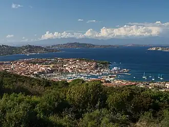 Blick auf Palau und Hafen. Im Hintergrund der La Maddelena-Archipel und Korsika. | ||