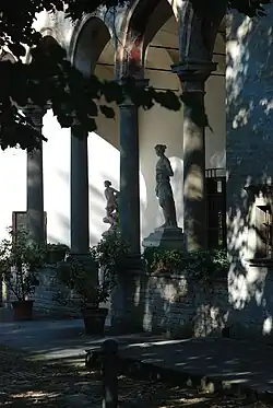Das Gebäude, das üblicherweise Giorgio da Erba Gian Francesco d’Agrate zugeschrieben wird, hat ziemlich bescheidene Ausmaße und nur ein Stockwerk, sowie einen H-förmigen Grundriss mit vier Ecktürmchen, die mit zwei begehbaren Loggien mit fünf Arkaden pro Seite, bestehend aus toskanischen Säulen.[6] Über den beiden Eingängen wurden zwei Epigraphen eingeschlagen. Über dem Haupteingang steht „DII FACIENTES ADIUVANT“, über der Eingangstüre auf der entgegengesetzten Seite „DII BONA LABORANTIBUS VENDUNT“.