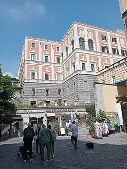 Von der Via Chiaia aus erscheint das Gebäude als befestigter Palast mit angeschrägtem Mezzanin mit glattem Bossenwerk; das Eingangsportal besteht aus einem Bogen aus Piperno im Barockstil, während die Fassade zur Via Fiangieri als Ansicht eines Adelspalastes des 18. Jahrhunderts konzipiert ist. Im Laufe der Jahre haben viele Hände dazu beigetragen, dem Palast sein heutiges Aussehen zu verleihen.