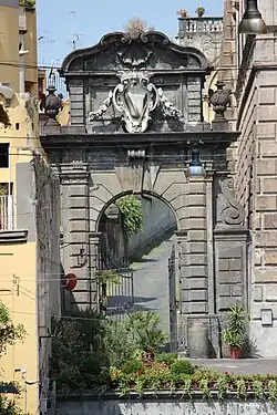 Ferdinando Fuga, der bereits 1726 gerufen worden war, um die Verschönerungsarbeiten am Gebäude auszuführen, führte dagegen das Eingangsportal zum Hof aus, das klar barocke Züge zeigt.[2]