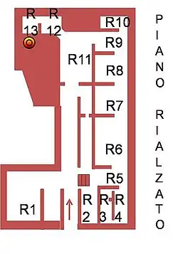 - P1: Erstes Vorzimmer, das auch als Festsaal diente.