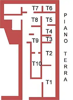 - T4: Raum mit Brunnen und Durchreiche, um das Geschirr in die oberen Stockwerke zu bringen