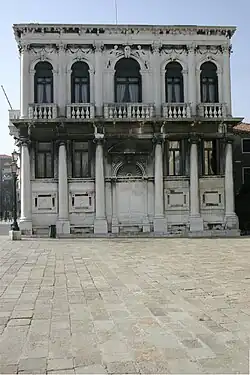 Das Mehrfach-Rundbogenfenster an der langen Seite besteht aus acht einzelnen Fenstern und neun korinthischen Säulen. Die Seite zum Campiello Loredan hin lässt den vorherigen architektonischen Stil erahnen. Die reicher ausgestattete Fassade ist die zur Kirche Santo Stefano hin, die von einer meisterhaften Steinfront, die an den Stil der langen Seite erinnert, gebildet wird und von Giovanni Gerolamo Grapiglia geschaffen wurde.