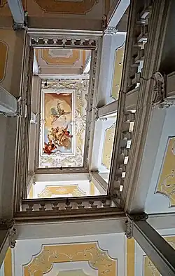 Im 2. Stockwerk befindet sich die Bibliothek mit etwa 12000 Bänden (mittelalterliche Handschriften, teils mit Miniaturen, darunter die Handschrift von Castelmonte[1], Inkunabeln, seltene Erstausgaben des 16. Jahrhunderts). Auf dem auf Leinwand gemalten Deckengemälde von Niccolò Bambini ist der Sieg der Weisheit zu sehen. Die Weisheit ist als eine in den Wolken thronende, geharnischte Kriegerin dargestellt, ein geschlossenes Buch mit sieben Siegel haltend.