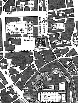 Der venezianische Kardinal Pietro Barbo ließ 1455 einen kleineren Palast neben der Kirche San Marco, seiner Titelkirche, durch einen Neubau erweitern, der 1467 vollendet war. 1464 wurde Barbo als Paul II. zum Papst gewählt. Zunächst verlegte er seine päpstliche Residenz hierhin, zog aber 1470 in den Vatikan zurück.