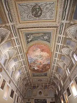 Mit den Umbauarbeiten wurde Giulio Cesare Fontana betraut. Sie sahen ein weites Atrium in der Mitte vor, das sich nach Süden öffnete (der heutige Haupteingang) und an das sich hinten eine große Aula mit Apsis anschloss, die für feierliche Zusammenkünfte gedacht war (der „Sala dei Concorsi“)[1], belichtet durch einige große Fenster, und über dem Atrium einen weiten Bibliothekssaal. An den Seiten dagegen, symmetrisch angeordnet, zwei rechteckige Innenhöfe, umgeben von Vorhallen, zu denen hin sich die verschiedenen Aulen öffneten.