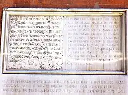 An der Fassade des Palastes zur Via Castiglione hin findet sich eine Steintafel aus dem 15. Jahrhundert mit einer Inschrift in Latein, die die Privilegien der Studenten auflistet, für die Stadt die Kosten für Studienbücher, Lebensmittel und Kleidung übernahm.