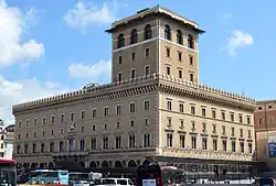 Der Bau steht im Zusammenhang mit der Neugestaltung der Piazza Venezia ab 1885. Bauform und Ausmaße des Palazzo delle Assicurazioni Generali entsprechen dem an der Westseite der Piazza gelegenen, wesentlich älteren Palazzo Venezia, wodurch baulich eine Symmetrie geschaffen wurde.