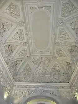 Vom Zugangsvestibül des Innenhofes aus gelangt man auf der rechten Seite zum Oratorio dei Mercanti, das noch immer den Jesuiten gehört und Sala Valeriano genannt wird, weil Giuseppe Valeriano der Architekt war, der den Palazzo Sanseverino in die Kirche umwandelte.